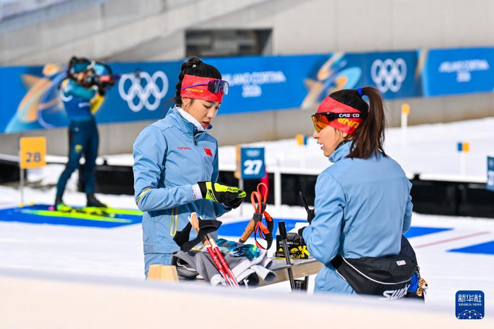 当地时间2月6日,中国冬季两项队在意大利安泰塞尔瓦冬季两项竞技场进行赛前训练,备战米兰-科尔蒂纳冬奥会冬季两项赛事。